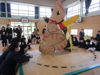 最初に、5年生の卒団式。次に、3年生の入団式をしました。5年生は期待書、3年生は任命書を校長先生からいただきました。